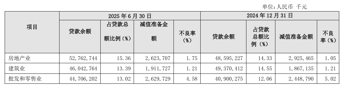 而在对公贷款的庞大盘子中,房地产贷款的“逆周期扩张”格外扎眼:2020年末,房地产贷款占比仅6.9%,尚属边缘板块;短短四年间,该板块以“跳级式”增速攀升——2023年末占比11.5%,2024年末跃升至14.3%,2025年中期进一步突破15.4%,一举成为该行第一大贷款投放行业。